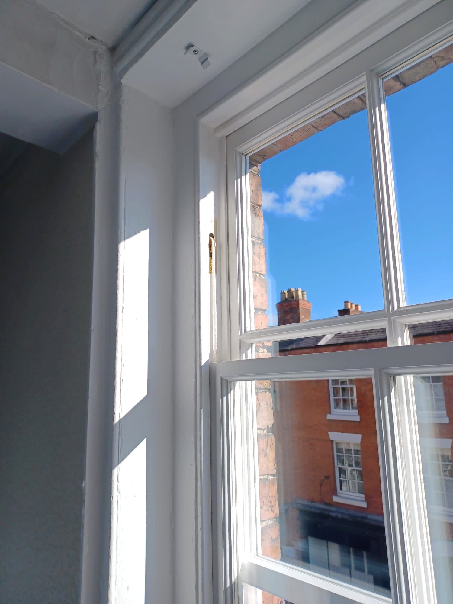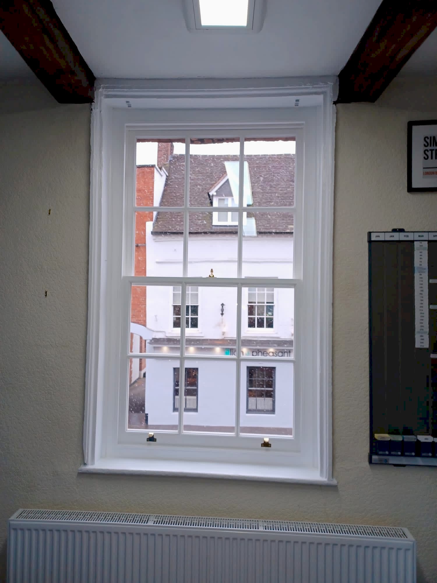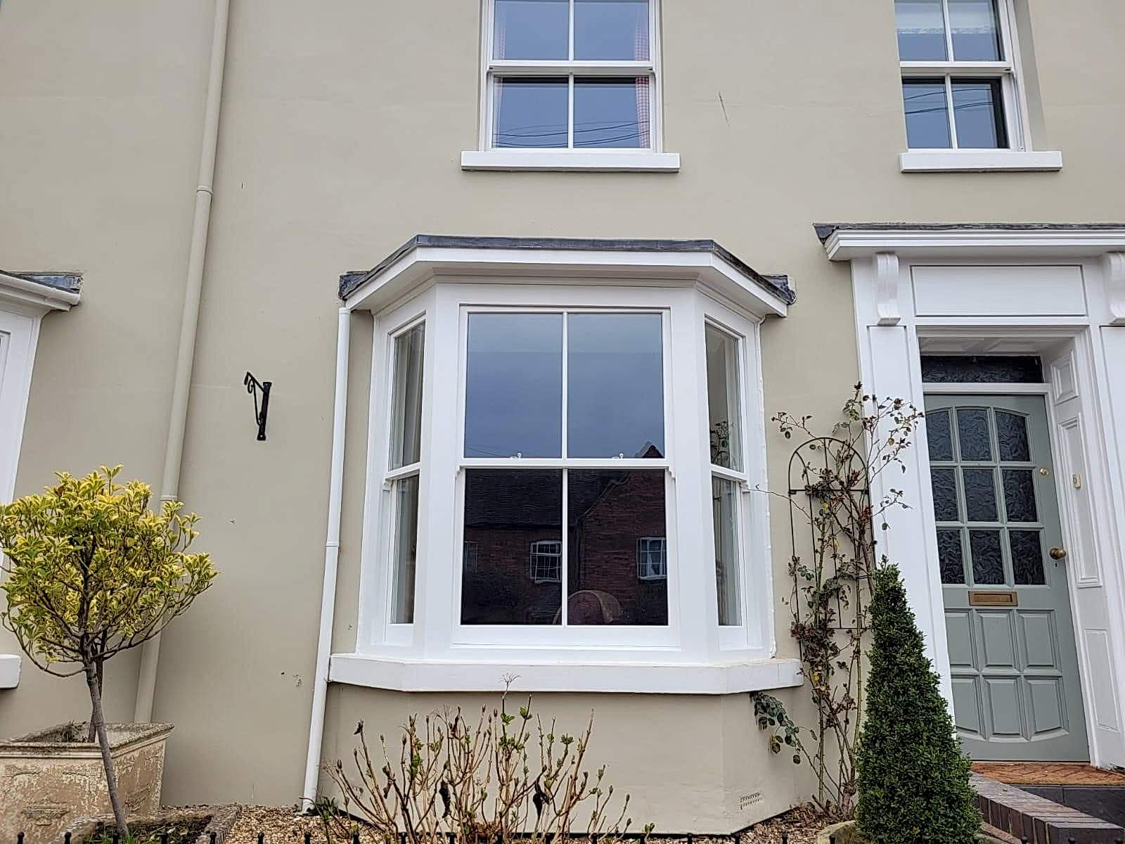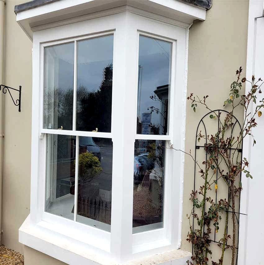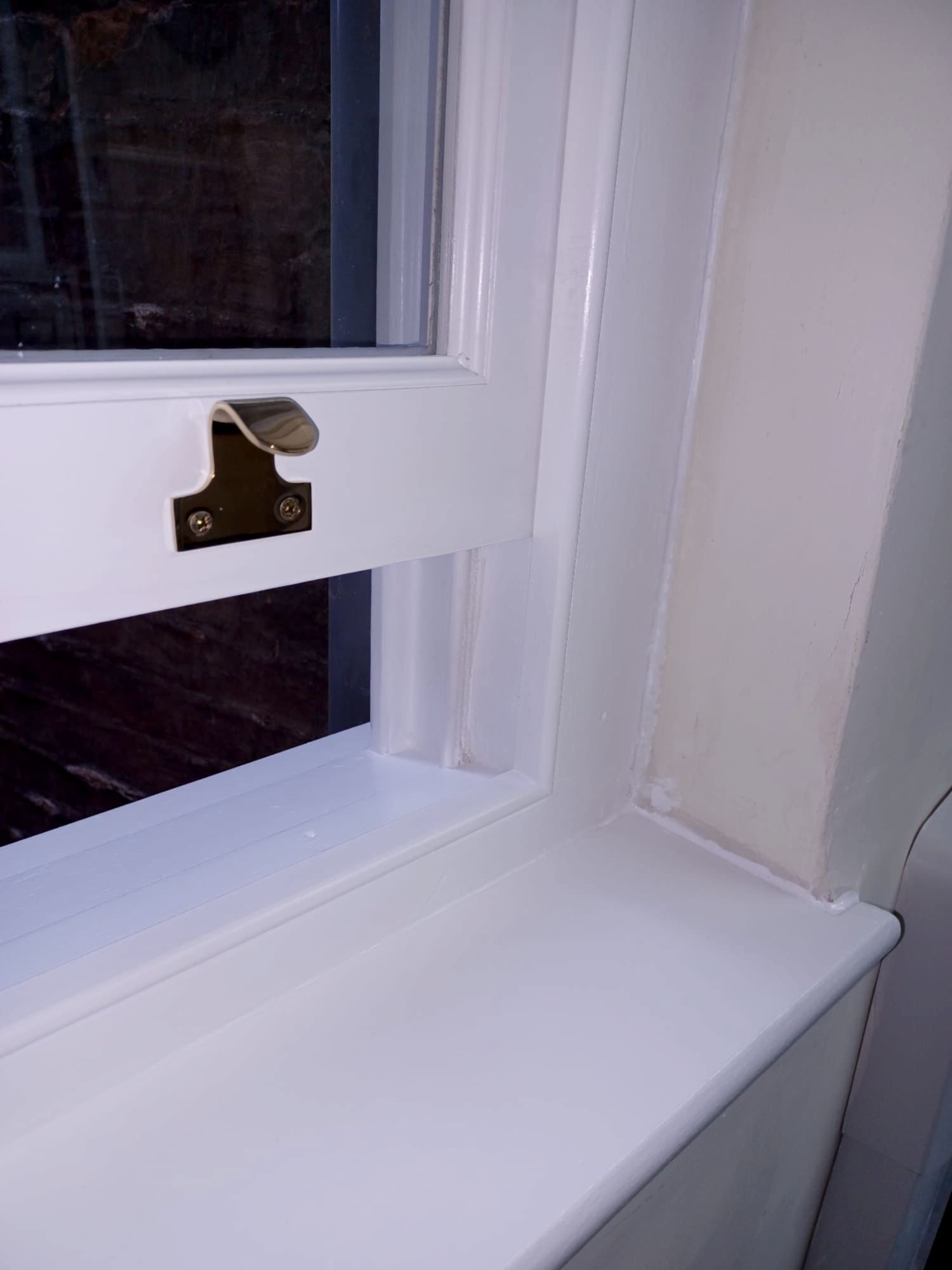 Details : x3 double glazed sashes installed into existing frames and decoration. Existing frames had subsided a lot. Grade 2 listed building with planning consent approved. The lower half of the boxes were completely rebuilt including replacement cills, outerjambs and pulley stiles. The frames were re-sealed to the brickworks.